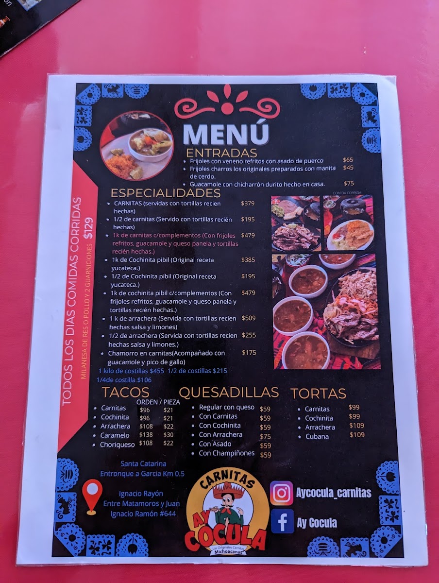 Carnitas 'Ay Cocula' Menu (Update 2025)